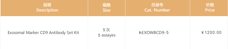 The Exosomal Marker (CD9) Antibody Set Kit provides an economical means to evaluate the presence of exosomal markers. The kit includes enough primary antibody to performat at least 10 western blot experiments for each target. The secondary antibody that is included in this kit has been optimized to enhance the signal-to-noise ratio. We do not recommend using other secondary antibodies with the primary antibodies at this time.