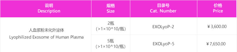 潤基生物提供的超純外泌體粉末是通過濃縮柱和 SEC 柱(Size Exclusion Chromatography)連續(xù)濃縮和純化,然后經(jīng)過真空冷凍干燥獲得的。外泌體粉末可來自各種體液(血清、血漿、尿液、唾液、乳汁等)和細(xì)胞培養(yǎng)上清液。粉末化的外泌體需經(jīng)過總蛋白含量(BCA 法)和納米粒子跟蹤分析顆粒數(shù)的測定等驗證,與新鮮的外泌體相比,冷凍干燥不會改變外泌體蛋白質(zhì)和核酸的穩(wěn)定性,反而易于運輸且長期儲存(+4℃),復(fù)溶后仍然保持外泌體的完整形態(tài)和生物學(xué)功能。